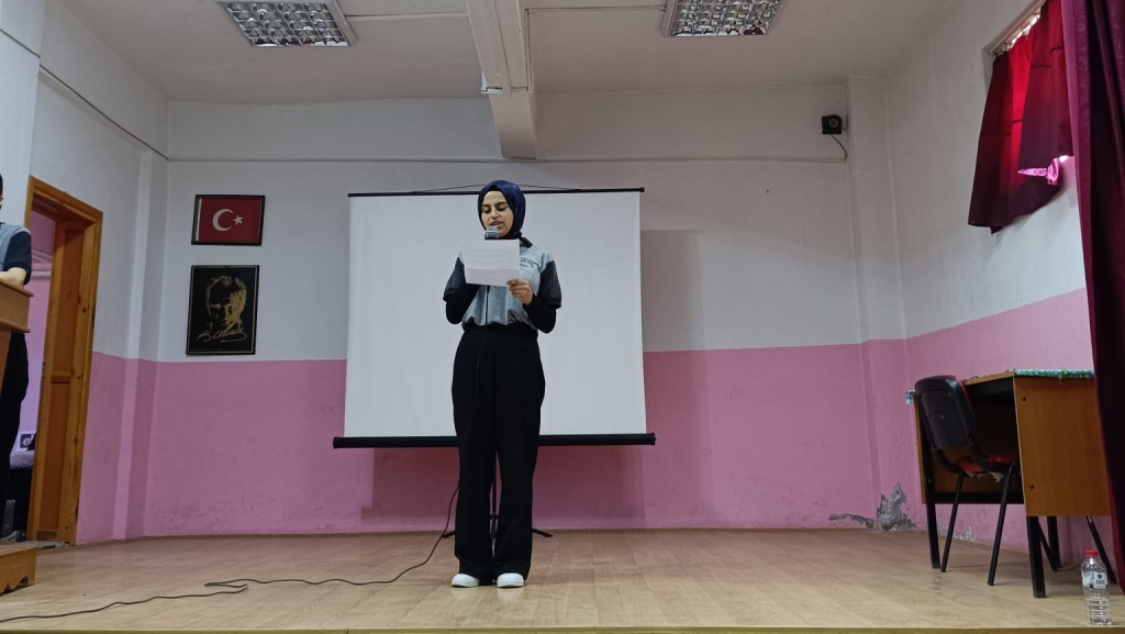 "Kurnaz insan okumayı küçümser basit insan ona hayran olur akıllı insan ise ondan yararlanır." Görev alan öğrenciler şiirler okudu, özlü sözleri dile getirdi.“Niçin az okuyoruz?” sorusunun cevabı, birkaç temel başlıkta özetlediler.